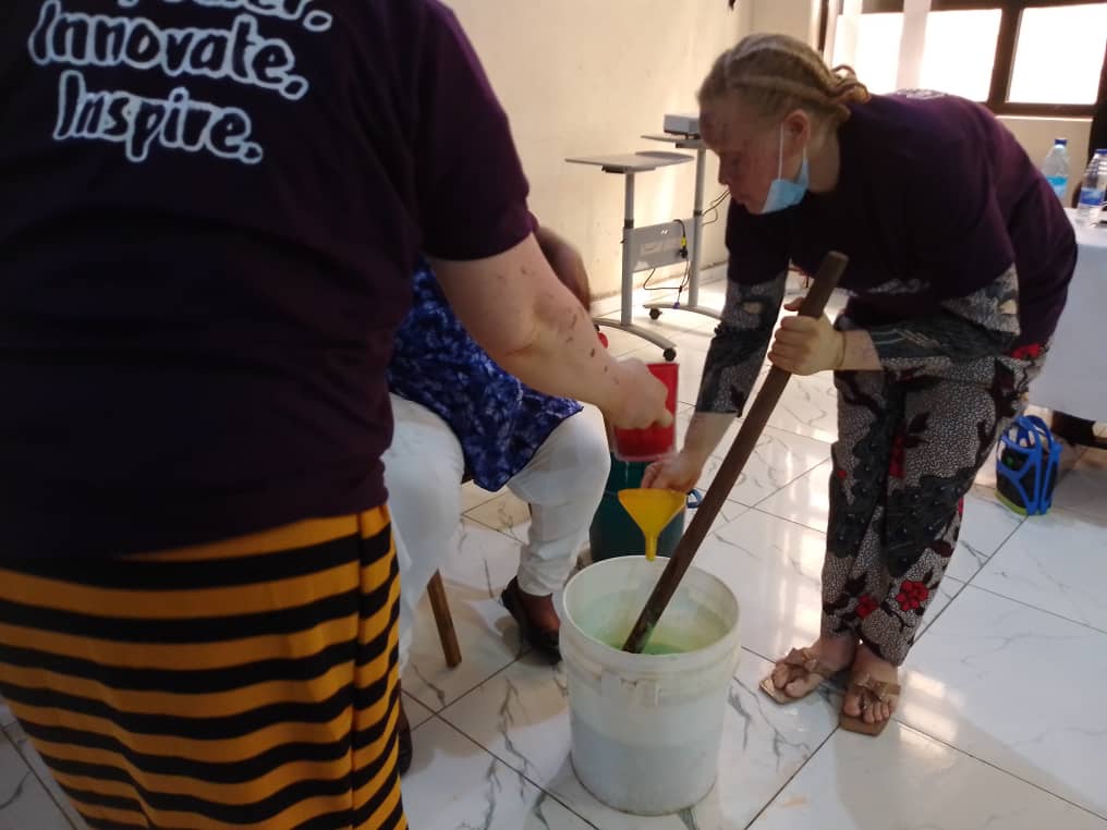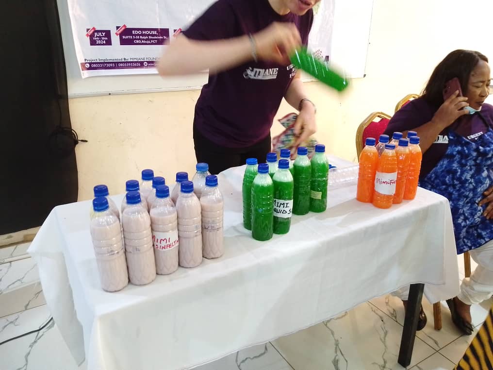 The training concluded with a hands-on session led by Amb. Beatrice Awala Mube, focusing on the production of liquid soap, air fresheners, and izal. This practical component allowed participants to apply their newly acquired knowledge and skills, reinforcing the lessons learned throughout the program.